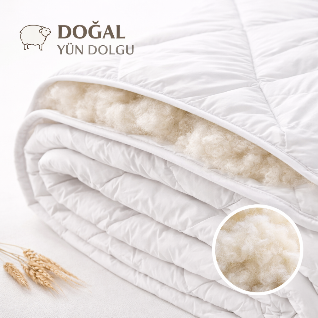 Ideal für alle, die auf natürlichen Schlafkomfort, nachhaltige Materialien und ein gesundes Schlafklima Wert legen. Perfekt für Menschen, die im Sommer kühl und im Winter wohlig warm schlafen möchten. Doğal uyku konforu, sürdürülebilir malzeme ve sağlıklı bir uyku ortamı arayanlar için idealdir. Yazın serin, kışın sıcak uyumak isteyenler için çok uygundur.